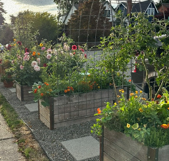 Design and installation of raised or in-ground vegetable and cut flower gardens, paired with optional, ongoing garden coaching.
